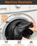 - 15 carbon fiber heating elements (left & right pockets, collar, upper back, and lumbar area) provide full-body warmth, including extra support for your lower back.