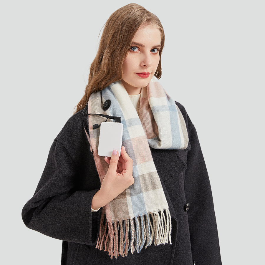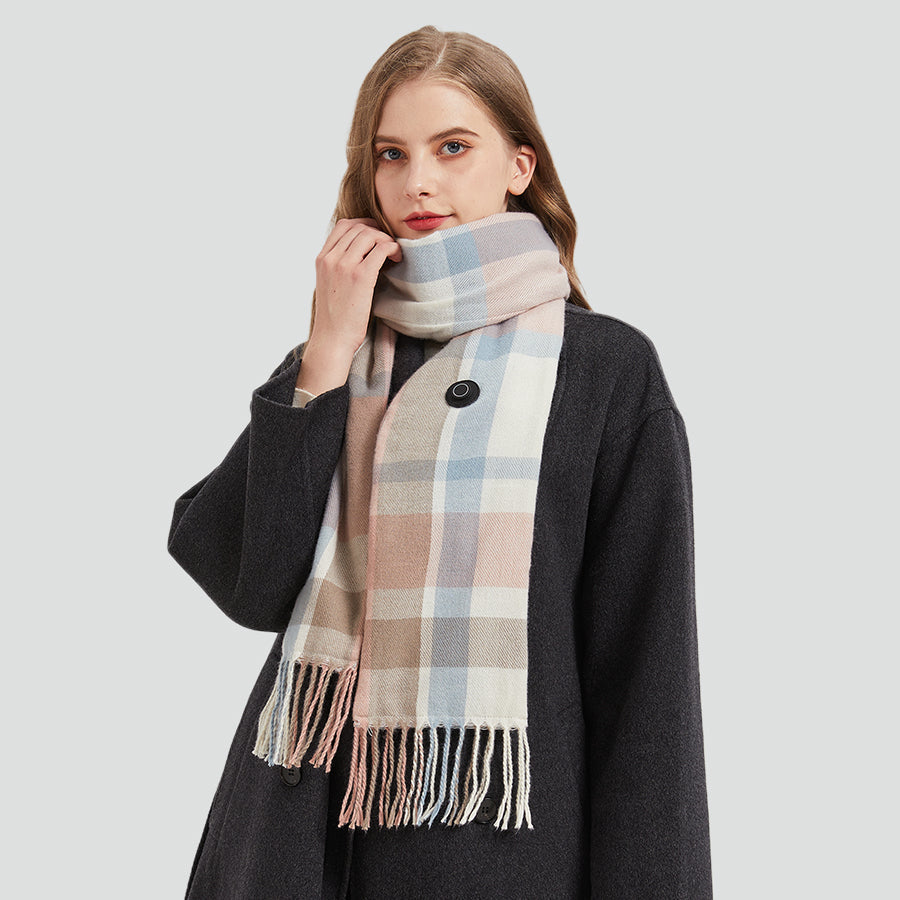Women's Rechargeable Heated Scarf with 5000mAh Battery – Pink Plaid Design